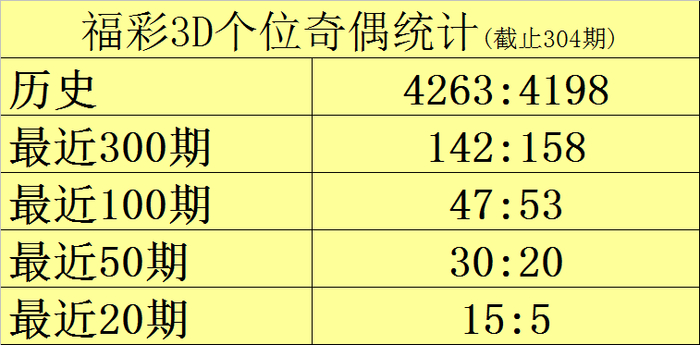 个位推荐:个位在连续20期开奖中号码奇偶比为15:5,目前奇数号码遗漏0期,偶数号码遗漏6期,另外号码0-9奇偶分布遗漏期数为:
